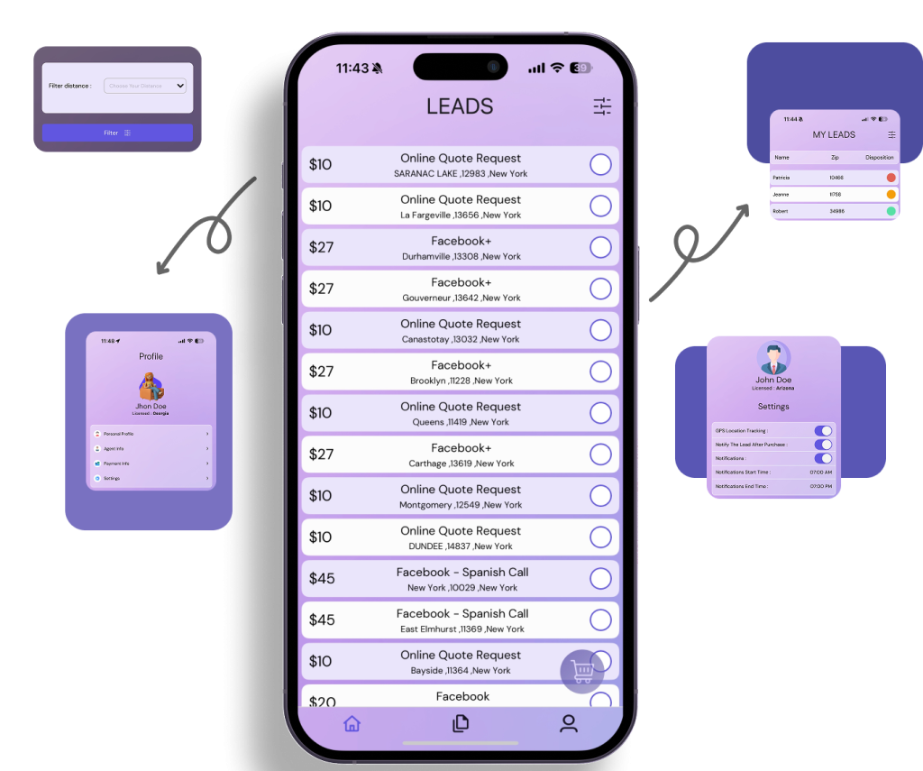 Perfect! You can filter leads by distance from your location or by any of the states where you’re licensed. You can even filter by all your licensed states simultaneously, giving you maximum flexibility to work across multiple regions.